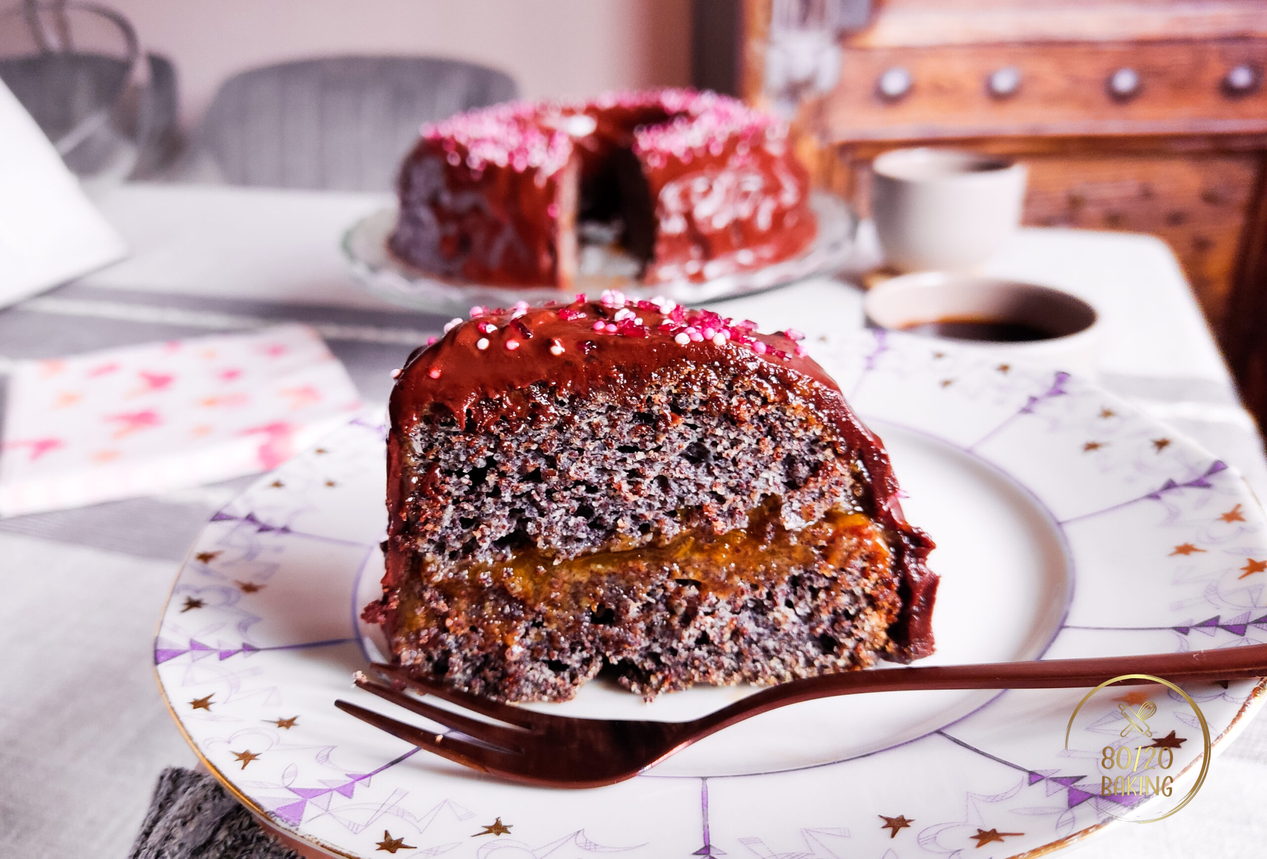 Poppy Seed Bundt Cake (with apricot jam and chocolate glaze)