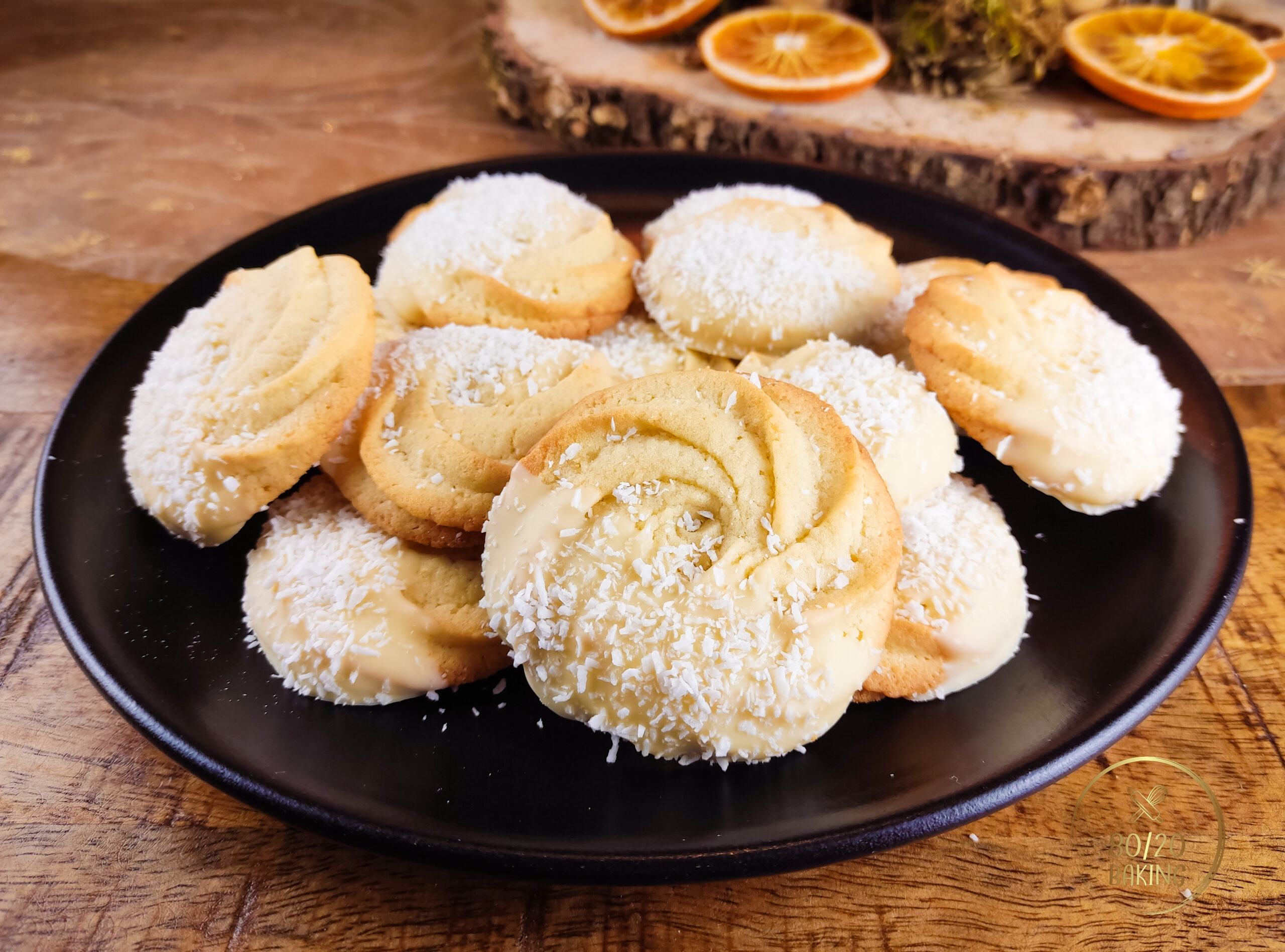 Coconut Almond Butter Cookies (with white chocolate glaze)